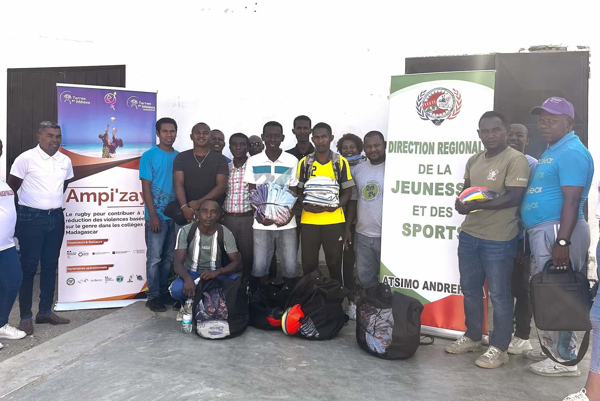 Ces cérémonies de remise des kits se sont tenues dans deux lieux emblématiques : à l’Académie nationale des Sports à Antananarivo et au sein des locaux de la Direction régionale de la Jeunesse et des Sports à Tuléar. Ils ont rassemblé des représentants du ministère de l’Éducation nationale, du ministère de la Jeunesse et des Sports, ainsi que les chefs d’établissement et professeurs d’EPS impliqués dans le projet. Leur présence témoigne de leur engagement dans la mise en œuvre du projet Ampi’zay et donne le coup d’envoi du cycle d’activités Rugby for Change dans les programmes scolaires.