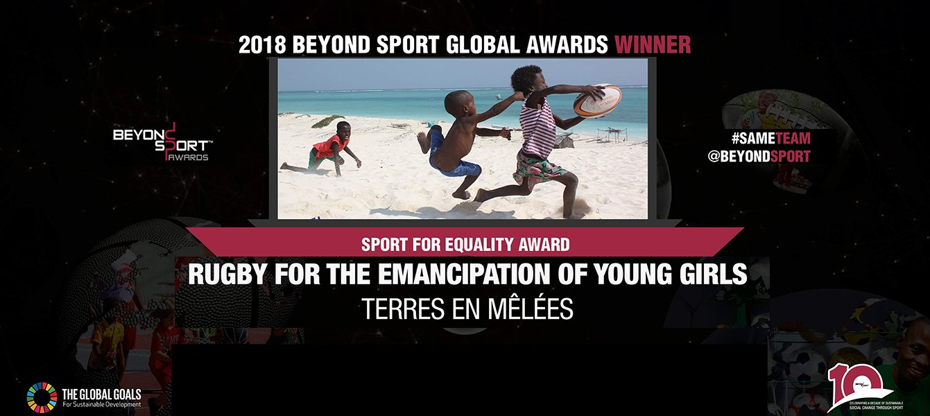 Le 12 septembre 2018, Terres en Mêlées a reçu à New York, un Beyond Sport Global Award pour son action en faveur de l’éducation à l’égalité des genres par le rugby à Madagascar. Ce prix est l’une des plus importantes récompenses au monde octroyées aux associations œuvrant dans l’éducation par le sport.